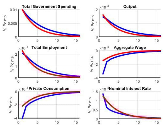 - Ambler, Steve, and Alain Paquet. 1996. Fiscal spending shocks, endogenous government spending, and real business cycles. Journal of Economic Dynamics and Control 20: 237–56. [Google Scholar] [CrossRef]