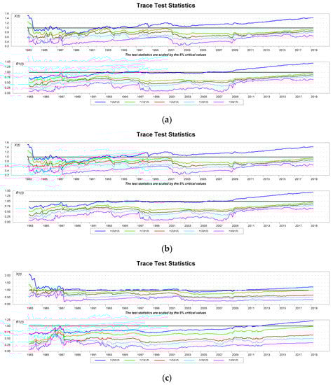 Trace Test 1 is the 5% significance level. (a) U.K.–U.S. case. (b). Germany–U.S. case. (c) Japan–U.S. case.