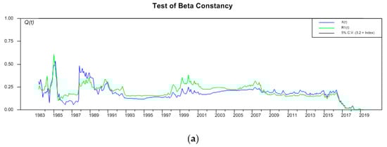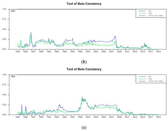 The Test of Constancy of Beta 1 is the 5% significance level. (a) U.K.–U.S. case. (b) Germany–U.S. (c) Japan–U.S.
