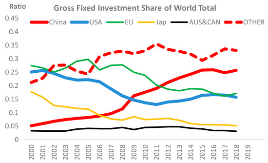 Gross Fixed Investment by Country as a Share of the World Total. Source: Thomson Reuters.