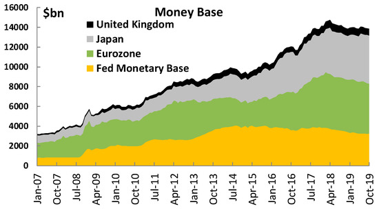 Figure 1 shows the monetary base for the four central banks as a share of nominal GDP from January 2007. Only the United States was showing some signs of a return to stability between base money and nominal GDP (via economic growth and the use of reinvestment caps to reduce the size of the Fed balance sheet). In the Euro Area, the United Kingdom, and Japan, there is no sign of any stability between the monetary base and nominal economic activity, and particularly so for Japan. Indeed, the nominal GDP profiles of these four jurisdictions since 2007 are in an inverse ordering to the money base ratios shown—suggestive of ineffective reverse causation (pouring in more money for growth problems arising from other causes).