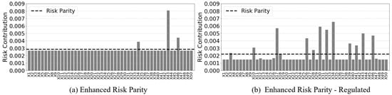 The aggressiveness of the regulating term can be controlled through an additional penalty in constraint (30). The degree of difference between the assets risk contributions can be impacted by changing the strength of the regulating term.