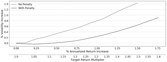 - The cost of the relaxation is measured by the increase in volatility and loss of risk party properties in Figure 11. It is less dramatic for lower target return multipliers, which result in higher realized returns. It is revealed that more aggressive targets severely lose risk parity properties, reverting the portfolio towards portfolios which raise concentration concerns.