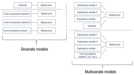 The second contribution of the paper is a set of multivariate models to investigate the nature of the relationship between the bitcoin market price and the hashrate, both directly or through the proxy of production costs.