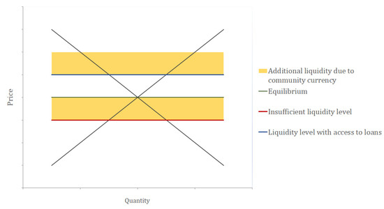 Figure 1. Additional liquidity due to a community currency.