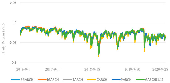VaR Values of several alternative specifications of GARCH models. (31 August 2016–1 September 2020).