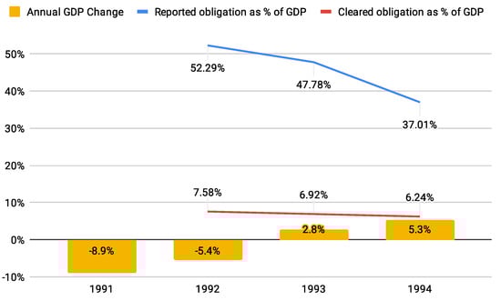 Obligations cleared by TETRIS Core Technologies (TCT) multilateral set-off in the 1991–1994 liquidity crisis.