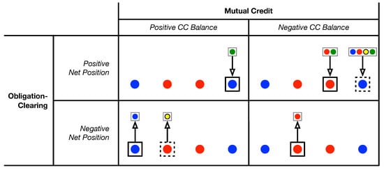In order to reduce (from the point of view of the TCT algorithm) the problem with liquidity to the problem without liquidity already discussed, the next step is to treat the positive and negative CC balances as if they were themselves obligations. At a very high level, then, for each month analysed, the obligation-clearing process in the presence of a mutual credit CC unfolds as follows: