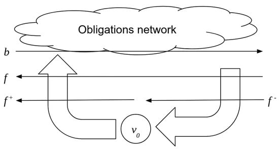 We should emphasize that all flows in the figure are part of a cycle. Therefore, a flow conservation rule applies to all the nodes in the figure, including the liquidity source and the four flow-type nodes. The flow conservation rule means that the sum of all inflows equals the sum of all outflows for each node. Therefore, the net position of every firm is not affected but the size of its balance sheet is reduced. This applies also to the CC circuit as a whole. The net position of the CC circuit stays equal to zero (as it should by definition of mutual credit) since all outflows equal all inflows, but the exposure of individual firms might change due to new credits issued or credits repaid.