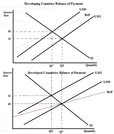 - Initially, we assume that the developing countries’ BOP position is at with an interest rate of i0. However, as the import demand for fisheries products increases, the importers from developing countries will purchase more foreign currency in exchange for domestic currency to mobilize imports. Hence, the money supply denoted by LM0 curve will shift to LM1 and interest rate to i1. As the money supply increases, the more domestic currency would be circulating in the market and the interest rates in the domestic market of developing countries will decrease. The decline in interest rates would mean that the value of the domestic currency has declined. This will result in a depreciation of the domestic currency in the developing countries and consequently, an outflow of capital to the developed countries where the return on investment (interest rates) is high. However, where developing countries have fixed exchange rates, central bank interventions in the money market through controls on interest rates may control some of the effects in the long run. Developing countries exports will decline on aggregate, with the possibility of them becoming net importers.