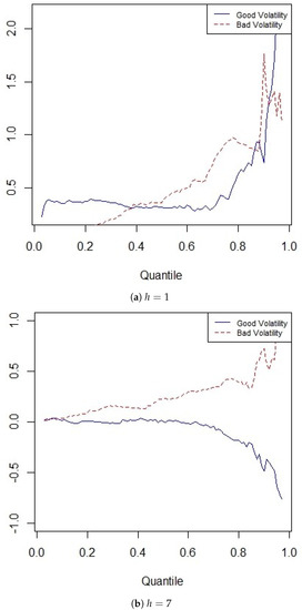 Good and Bad Volatility for (a) h = 1 and (b) h = 7 forecast horizons.