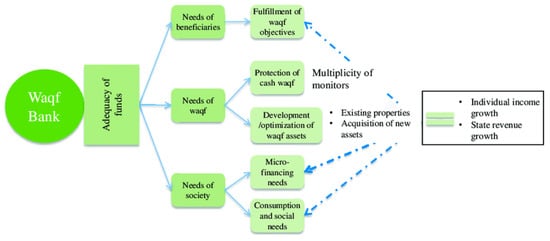 Institution of awqāf can be described as charity profit-making organizations with great potential power of community empowerment and nation building. They may appear as privately-owned financial institutions, social banking institutions, income-generating institutions, and institutions interested in charity activities and the redistribution of wealth (Ahmed 2004, p. 150). Moreover, they have various objectives and respective challenges such as being under-financed or being short-lived because of the unfavorable conditions of poverty without financial aid from other organizations (Arnawut 2005, pp. 3–20). Social banks, on the other hand, represent non-profit organizations dedicated to socio-economic welfare. Islamic social banks seek to alleviate poverty while contributing to the community’s economic development and upbringing of micro-finance institutions against poverty (Ammar 2006, pp. 11–19).