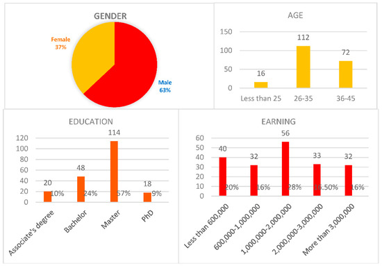 According to the above explanations and based on the 21 items in the questionnaire, the required sample is something between 105–315 questionnaires. Finally, 200 questionnaires had been completed and collected for further analysis. Table 1 shows the demographic data of the sample.