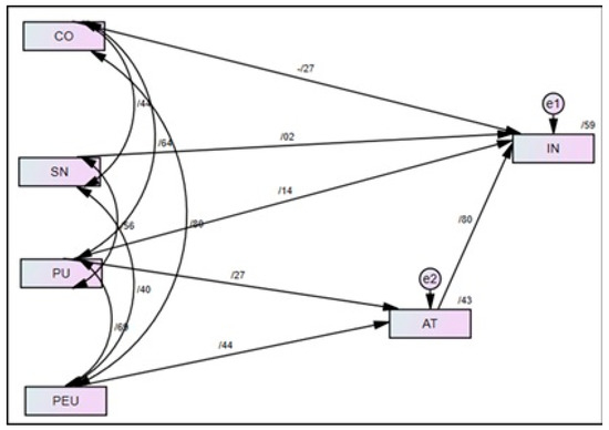 The outcome for H4: t statistics is less than 1.65 (10% error level (Hair Jr et al. 2016)), the effect of subjective norm on usage intention is not meaningful; hypothesis 4 is not confirmed.