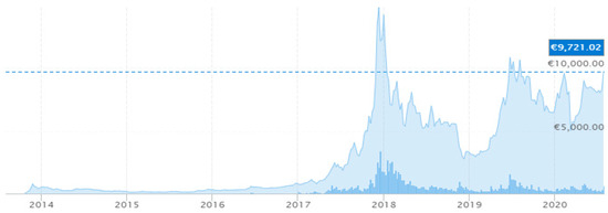 Continuously evolving since its appearance, the price of Bitcoin reached an unprecedented peak in 2017. Then, at the beginning of 2018, more precisely, on January 4, came the phenomenon known as the Great Crypto Crash (Figure 5). For about one month, as a consequence of this event, the price of Bitcoin fell sharply by about 65%. That moment highlighted, more than ever, that the movements of Bitcoin are followed by the other cryptocurrencies, which reached declines of up to 80%.