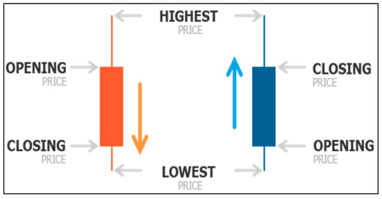 The primary source of data and information was the Quandl Dataset sourced from Blockchain.com (Quandl 2020). The source contains up to 32 datasets, including the BTC market price. Each dataset contains a time series for a variable. The secondary dataset was the average OHLC (open-high-low-close) candlestick values across multiple exchanges scraped from Rbitcoincharts.com (Bitcoin Charts 2020). Additionally, any of the transforms accepted were denoted upfront before the variable. In the circumstance of the BTC simulation, the Quandl transform applied was “diff”, which implied the change over time depending on the frequency (i.e., daily frequency data would be sampled as daily frequency change of that variable). The OHLC candlestick chart data (Figure 3) were sourced directly from Rbitcoincharts.com, consolidating the average OHLC candle according to a number of varying exchanges which trade BTC and similarly pegged altcoins. One of the major difficulties encountered upon sourcing the data was to get a consistent market price from BCHAIN, which would match the OHLC charts sourced. The difference appeared to be according to when the different data sources selected their end-of-day settlement. Rbitcoincharts.com was selected, as the close price difference was roughly around ($1–$2).