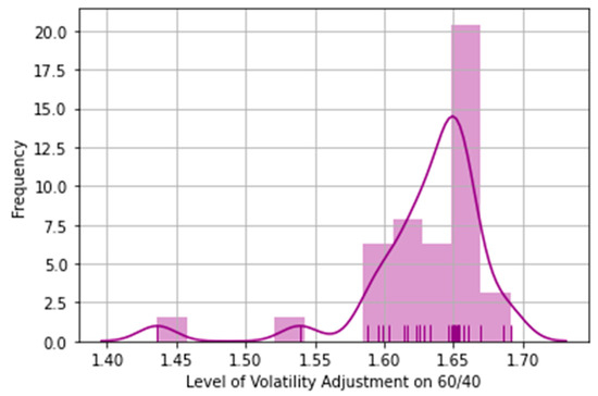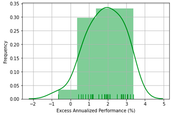 Finally, we plot the distribution of excess returns when we compare the volatility-adjusted 60/40 performance versus the corresponding full investment in the stock. We find that out of our 30 companies that we examined, only 1 had negative excess returns. The other 29 out of the 30 names were positive, with an average annualized excess return of 1.85%, and three-quarters were between 1.14% and 2.73%. Below, in Figure 4, we document the empirical evidence that the historical annual excess returns for investments in 60/40 volatility-adjusted portfolios outperform the equity-only investment.