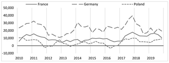 In this section, I present the calculations to verify the theoretical issues discussed above. I chose the Weimar Triangle countries for statistical analysis. They are France, Germany and Poland. If the proposed method of testing autonomous expenditure multipliers is verified positively, detailed studies of other countries will be possible. All calculations and analyses are based on Eurostat statistics. For the analysis, I used the period of the last nine years (2010–2019). Thanks to the BEC division of imports, I was able to use quarterly data. Thus, all analyses should be treated as short-term analyses.