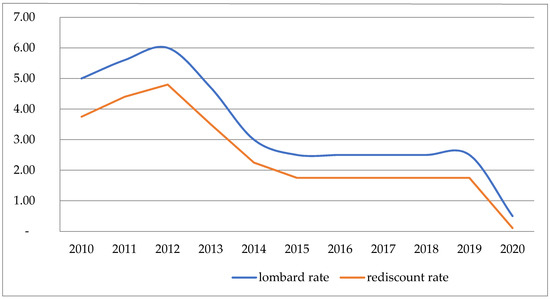 Lombard rate and rediscount level in Poland (2010–2020). Source: own study based on (NBP 2020).