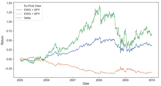 The impact of an incorrect confidence forecast can be a significant drag on performance in the very competitive world of asset management. For example, in Figure 3, we track two opposite views considered ex-post: (long EWG, short SPY) versus (short EWG, long SPY). The delta between these two views peaks at over 125% at the end of 2007. This implies that there would have been a 1.25% performance gap between views for every 1% of portfolio allocation. To make matters more interesting, the winning view is counter to the generally accepted market equilibrium returns. Germany outperformed the United States by a surprising 50% over the 2005–2008 period. As always, when dealing with predictions, the problem is that not all investors would be able to correctly choose the right view all the time, never mind the right degree of confidence, without some kind of systematic process.