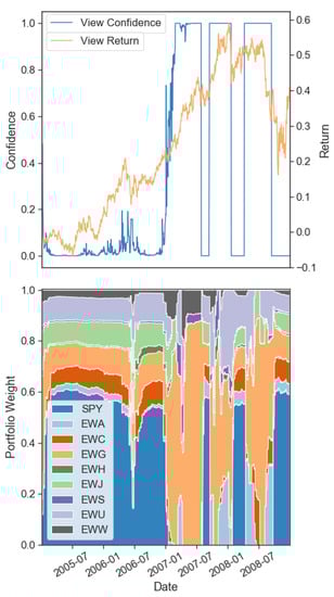 To empirically test the dynamic advantage of our framework, we isolated two tricky exactly opposite views, the results of which we obtained through the benefit of hindsight. The model needs to identify when views are being realized (and allocate capital to them) and, more importantly, when views are not being realized in the market (and divest capital from them) to prove useful. We showed that its confidence in the ‘correct’ view increased as the view was realized, and its confidence in the ‘incorrect’ view decreased when the returns expected failed to materialize. Our proposed dynamic confidence level-based asset allocation model, despite its increased trading costs, outperformed realistic BL scenarios with static confidence levels from a trading perspective. Our framework produced higher expected returns for the same portfolio risk level in the tested tricky numerical examples. Further, optimizing for multiple periods ahead (two or five) showed increased performance over a single period model when returns are emphasized more than risk.