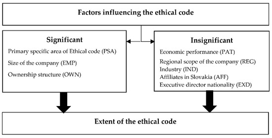 Factors that influence extent of the ethical code (Graphical conclusion). Source: own processing.