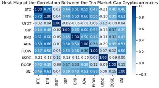 Figure 3 shows a heat map of the relationships between the price log returns of cryptocurrencies. BTC and USDT are the only cryptocurrencies that have mostly negative correlations with the other cryptocurrencies in terms of price log returns. This may be due to USDT being a stable cryptocurrency, so when the prices of BTC or other Altcoins collapsed, investors moved to the stable cryptocurrency to hedge their investment in the cryptocurrencies. The other cryptocurrencies have moderate correlation with one another. This may suggest that the multivariate machine learning model known as long short-term memory networks may be useful in predicting the price returns of cryptocurrencies.