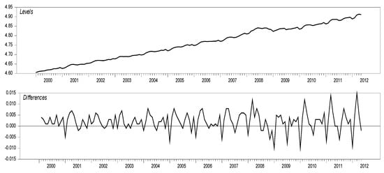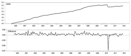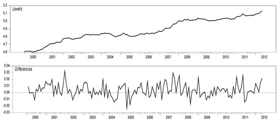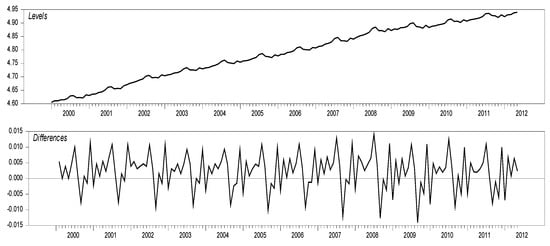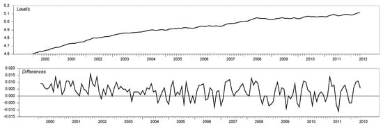 At this analysis point, one should consider the standard variables in empirical research with the time-series data for prices (Hoover and Juselius 2015). The analysis in tourism price modelling is based on converting nominal data to real data without losing information in the data by deflating or seasonal processing (Juselius 2015). Therefore, an additional formulation is obtained by taking logarithms but now specifying new variables. It is a logarithmic autoregressive transformation, where better insight into the variables is taken into account, e.g., it is much easier to define an expected range of values that lies outside the mean in the than in the . We have transformed variables from nominal to real price indices as follows: the Slovenian price index in the hospitality industry: