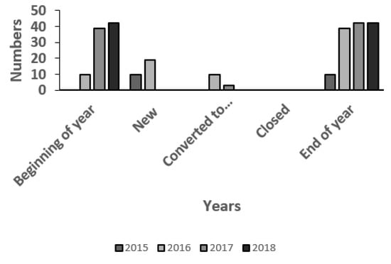 It was noticed in the year 2017 that a down trend had started as the total establishments excluding Madewell came down to 411 (drop of 10.65% over the previous year) while total numbers including Madewell came down to 532 (drop of 7.16% over the previous year). This trend continued into 2018, as the number came down to 377 (drop of 8.27% over the previous year) and 506 (drop of 4.89% over the previous year) (Table 1).