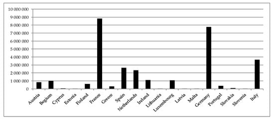 Total assets of the euro area banking sectors (at the end of 2018)—in mln EUR (source: own work based on the European Banking Federation data).