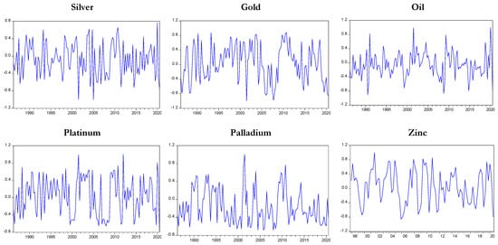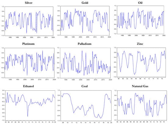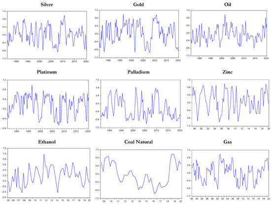 Our sample consists of monthly data on nine commodities—oil, silver, gold, platinum, palladium, zinc, ethanol, coal, and natural gas—obtained based on the availability of the data. These commodities are used in many industries as raw materials. Data about silver and gold come from the Chicago Mercantile Exchange (CME). Data about platinum palladium and natural gas come from the New York Mercantile Exchange (NYMEX). The data on zinc and copper come from the London Bullion Market Association (LBMA). Information about coal comes from the International Exchange (ICE), whereas the data on WTI oil are taken from the Federal Reserve Bank of St. Louis.