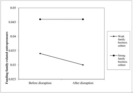 First, funding of family-related entrepreneurs is more likely where family business culture is strong than where family business culture is weak. Second, disruption caused a decline in funding family-related entrepreneurs where family business culture is weak. Third, disruption did not cause a change in funding family-related entrepreneurs where family business culture is strong.