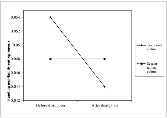 Effects of disruption and secular-rational culture on funding of non-family-related entrepreneurs.