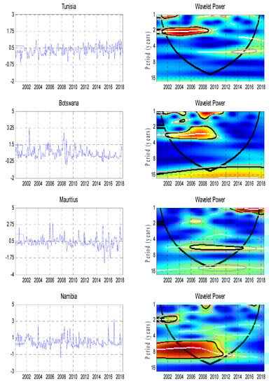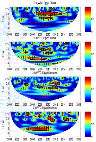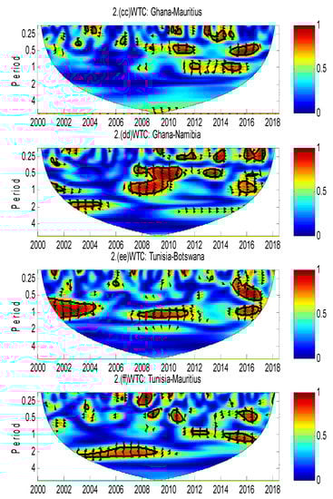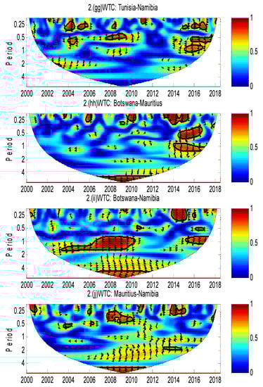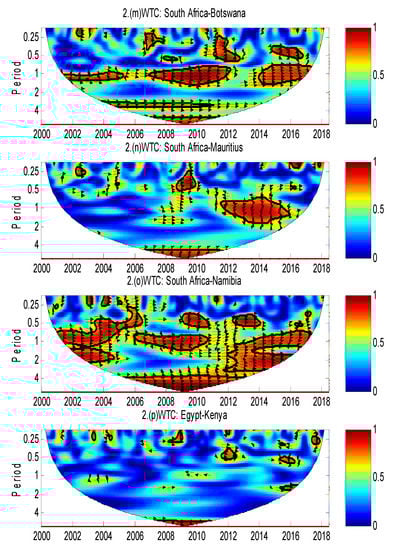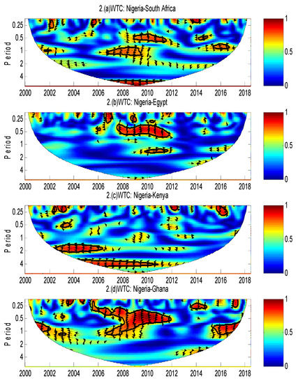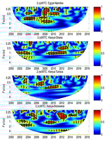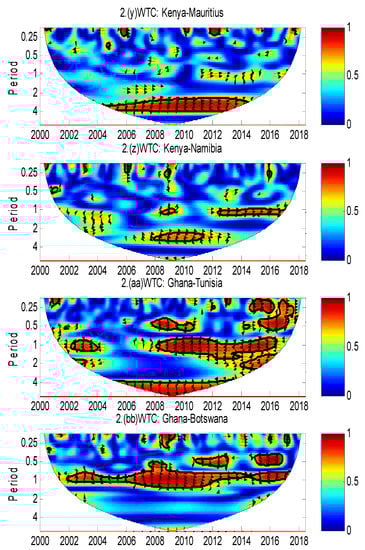 Pairwise wavelet coherency between selected nine African and five advanced countries.