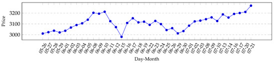 We recorded trading information over a period of time from 25 May 2020 until 27 July 2020, between 11:00 a.m. and 6:00 p.m. each business day for a total of 43 different Contracts for Difference (CfD). In the recorded market phase, we observed a general recovery from the stock exchange crash of March 2020, as showcased in Figure 1. Overall, markets were in a rather unexpected, strong up-momentum. Detailed charted market data for the assets that we have used can be found in the Appendix A. While we did record a total of 43 different contracts, only four were chosen for the agent to learn and test on, and these assets are: OIL, GOLD, EURUSD, and US500. These assets vary vastly in what kind of financial assets they represent, which is also the reason why they were picked out of the 43 total recorded assets. The US500 relates to the Standard & Poor’s 500 stock market index, which includes the top 500 stock traded companies in the United States of America, while GOLD and OIL both rely on the respective real-world commodities. The EURUSD asset comes from a foreign exchange market between the Euro and the US Dollar. To evaluate the agents’ generalization performance, we split our data into training and test data sets, such that every third day added to the test data set instead of the training data set. The Appendix A contains figures that show all daily closing prices for every asset picked and trained on.