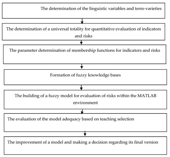 The stages of the model development for evaluation of risks using the apparatus of the theory of fuzzy sets are given in Figure 2.