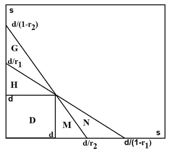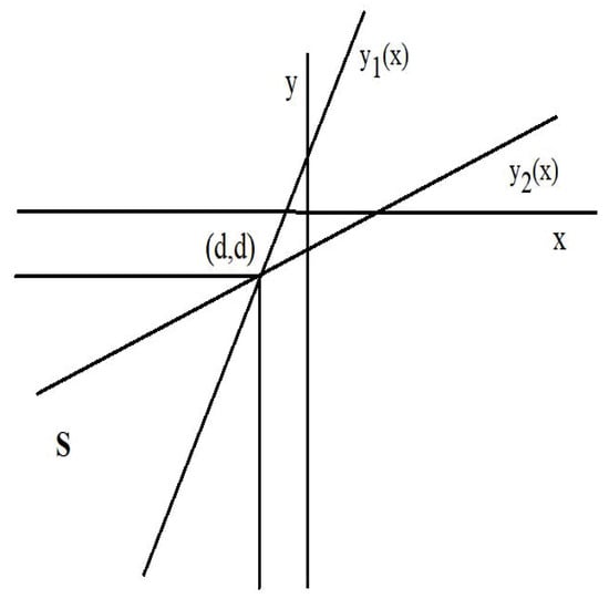 In the extended case, the region S of default, that is is the region between the lines and contained in the “orthant” determined by the half planes and as depicted in Figure 3.