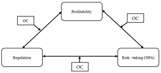 This proposed holistic approach largely takes input from the triad of regulation, profitability, and risk-taking in banks (Figure 2) (Barth et al. 2008; Barth et al. 2004; Triki et al. 2017). The model advocated in the study hinges on three parameters: the impact of regulation on NPAs, the impact of regulation on profitability, and the impact of NPAs on the profitability of the bank. Accordingly, our study uses the following holistic approach for the performance of a bank: