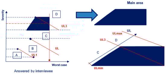 The risk thresholds are based on every BU depending on their size and their strategic objectives. Therefore, it is necessary to define a measure expressing the risk level that can be associated with a specific risk type and for this reason, the risk thresholds are identified through specific rating classes, being the unexpected loss the way to represent the risk. Starting from these abovementioned iso-UL surfaces, the rating classes for the collection of the subjective estimates can be determined. The collection of the answers related to frequency corresponds to a mean severity-worst case plane identified by the mean frequency value suggested by the interviewees according to the proposed Table 3 as a reference scale.