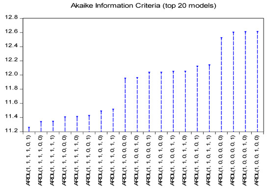 Results of optimum lag length of each variable (AIC). Source: Researcher’s calculation using E-Views 10.