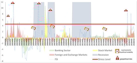 Graphical analysis shows that most of the economic and political trouble trigger FSI at a low level (below the stress level). They are mainly triggered by credit rating downgrading (in May 2008, February 2011, May 2012, November 2013, December 2014, and September 2015); by the central bank’s interventions through financial engineering (in May and August 2016 and in September 2017); or by internal political trouble such as conflict between political parties, government members’ resignation (January 2011, February 2015), or election delays (2014–2016).