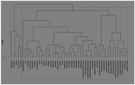 To conclude the bibliometric analysis, it is important to mention that it is particularly interesting to note the definition of two very marked conceptual structures in the publications. One is related to the external environment of the companies and words such as environment, construct, dimensions, link and suggestions. The other perspective is related to the internal environment of the business, whereby terms such as strategy, business development, absorptive capacity, owners, organizations, innovation, models, growth, management, financial development, entrepreneurial orientation and knowledge can be seen. These two main subgroups can be seen in the Figure 5.
