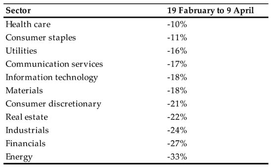 - Wójcik, Dariusz, and Stefanos Ioannou. 2020. COVID-19 and Finance: Market Developments So Far and Potential Impacts on the Financial Sector and Centres. Tijdschrift voor Economische en Sociale Geografie 111: 387–400. [Google Scholar] [CrossRef] [PubMed]
