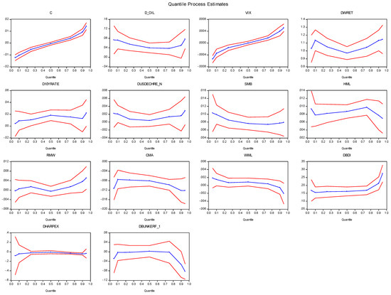 Graphical illustration of the quantile regression (QR) estimates for the bulk sector.