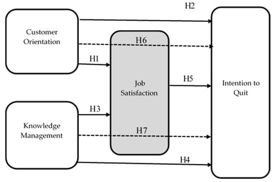 Figure 1 captures the conceptual framework for this study and includes seven hypotheses grounded in the core debates in the literature on customer orientation, knowledge management, job satisfaction, and intention to quit.