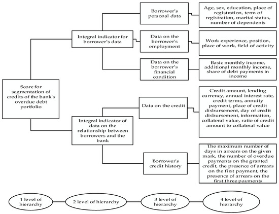 Hierarchy tree of the economic-mathematical model of risk assessment of credits of a bank’s overdue debt portfolio by the segment of lending to individuals (author development).