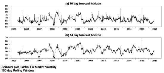 This phenomenon is in line with the findings presented by () and () that currency crises tend to be regional. From a policy point of view, in this paper, we document significant macroeconomic implications. Firstly, the extent of global foreign exchange markets’ volatility channels highlight the significance of contagion and systemic risk, particularly from the global systemically important financial institutions. Secondly, the substantial return spillovers between developed countries, especially within the European region (Eurozone and non-Eurozone currencies), further quantify the importance of cross-market linkages and the recent financial innovations. In addition, it opens avenues for a better understanding of the potential crisis of a highly interlinked nature, mirrored in the historical economic events.