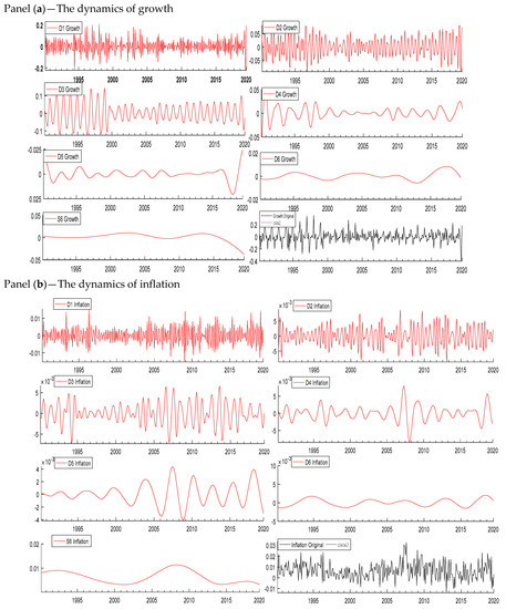 - Uddin, Gazi Salah, Ahmed Taneem Muzaffar, Mohamed Arouri, and Bo Sjö. 2017. Understanding the Relationship between Inflation and Growth: A Wavelet Transformation Approach in the Case of Bangladesh. World Economy 40: 1918–33. [Google Scholar] [CrossRef]