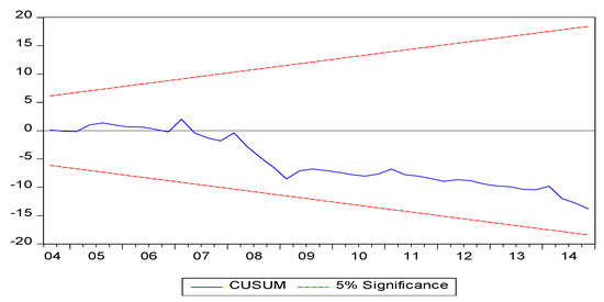 Following this, to determine the stability of the model, a CUSUM test was conducted.