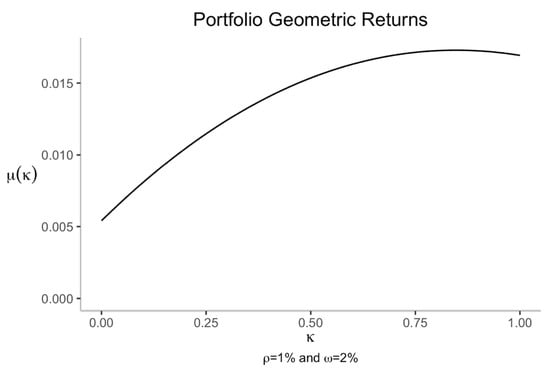 The last formula shows that the geometric return decreases in the variance of the portfolio. In the next section, we use the historical variation of bond and stock portfolios to show that the geometric return is maximized at a kappa that is smaller than one, i.e., the geometric return is maximized by a balanced portfolio rather than a portfolio that is fully invested in stocks.